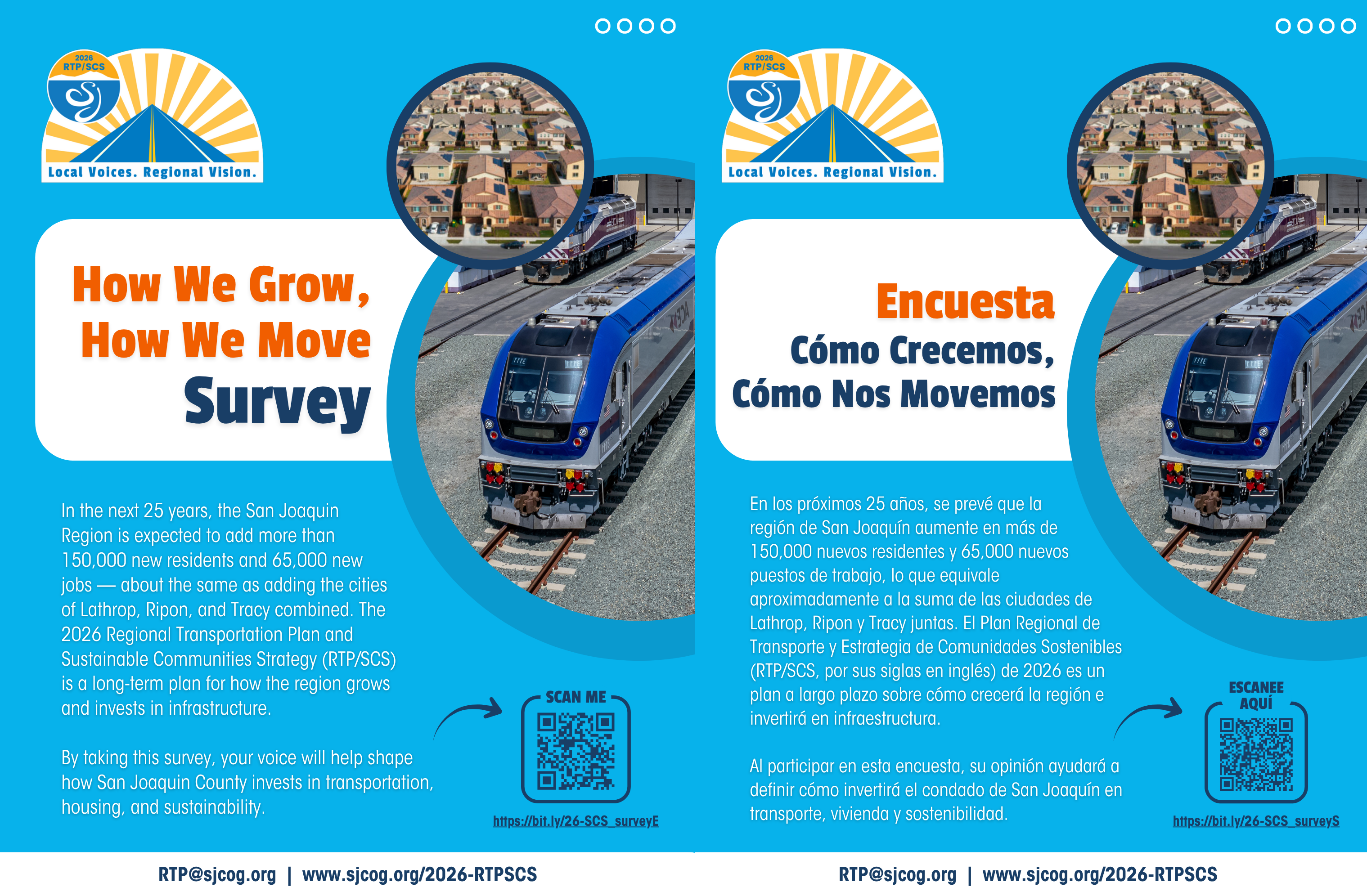 The San Joaquin Council of Governments is updating the region’s long-range plan for how we grow and invest in infrastructure – the Regional Transportation Plan/Sustainable Communities Strategy (RTP/SCS) for 2026.
